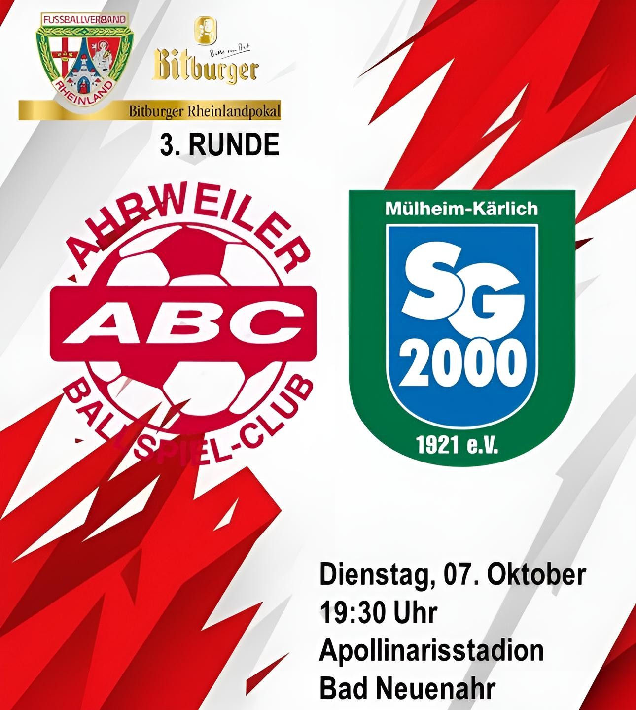 In der 3. Runde des Rheinlandpokals empfängt der Ahrweiler BC die SG 2000 Mülheim-Kärlich.