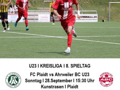 ++ U13 DES ABC ÜBERZEUGT IM TOPSPIEL ++ 27 Sep. 2025Martin Brand Die U13 des Ahrweiler BC konnte am Samstag im Topspiel der D Junioren-Bezirksliga einen wichtigen 4:1-Erfolg gegen den Nachwuchs von Rot-Weiß Koblenz... Read More0