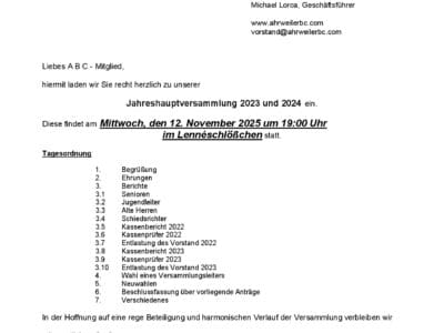++U17 ZEIGT SPIELFREUDE TROTZ FERIENPAUSE++ 25 Okt. 2025Martin Brand Die U17 des Ahrweiler BC nutzte die Herbstferienpause für einen Test gegen die A-Junioren der SGL Heimersheim. Auf dem Kunstrasen in Bachem... Read More0
