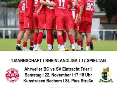 Liebe Fans des Ahrweiler BC, Bitte beachtet die kurzfristige Änderung der Anstoßzeit und des Spielorts für unsere Rheinlandliga-Heimpartie des 17. Spieltages! Rheinlandliga:... Read More
