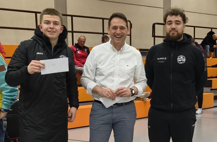 Für die U23 des Ahrweiler BC ging es am vergangenen Samstag erstmals nach der Winterpause wieder in externen Vergleichen gegen den Ball. Budenzauber beim Rasting-Cup in Meckenheim war angesagt. Und die Jungs von Ricardo Ribeiro und Tobias Roth hinterließen dabei einen guten Eindruck. Am Ende erreichte das Team, bestehend aus Hakan Bakir, Luca Galdino, Jonas Adams, Muris Susa, Justin Buczek, Elvedin Hamza, Bartek Metza und Chadi Adwi, einen guten 3. Platz. Nach makelloser Bilanz mit vier Siegen in der Vorrunde gab es im Halbfinale eine knappe 2:3-Niederlage gegen den SV Niederbachem. Im kleinen Finale besiegte die Rheinlandligareserve den SC Altendorf-Ersdorf, zudem sicherte sich Bartek Metza die Torjägerkanone.