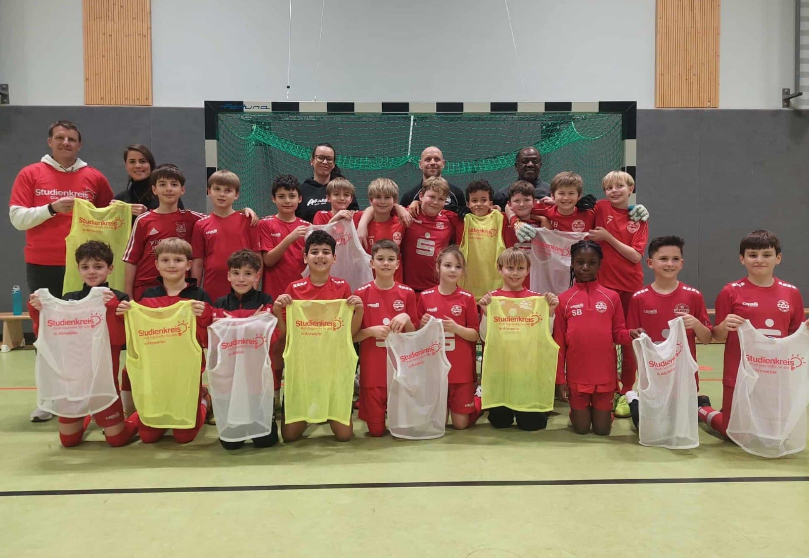 Mit einer Sach- und Geldspende an die gesamte Nachwuchsabteilung des Ahrweiler BC setzt der Studienkreis Bad Neuenahr-Ahrweiler ein bewusst lokal verankertes Zeichen für nachhaltige Jugendförderung. In der vergangenen Woche übergab Mario Schminke, Inhaber des Studienkreises, eine umfangreiche Ausstattung an neuen Trainingsleibchen in mehreren Farben sowie einen zusätzlichen Geldbetrag an den Verein. Die Übergabe erfolgte exemplarisch im Rahmen einer Hallentrainingseinheit an U11-Trainerin und Vorstandsmitglied Sarah Preußner.