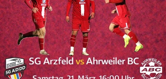 Wenn es für den ABC am morgigen Samstag zum Tabellensiebzehnten SG Arzfeld geht, ist die Favoritenrolle klar verteilt. Dennoch mahnt das Trainerduo Markus Pazurek / Maximilian Fichtl: „Wir erwarten ein Spiel gegen einen tief stehenden Gegner, der uns das Leben so schwer wie möglich machen wird. Konzentration wird gebraucht, ebenso müssen wir wieder bis zum Anschlag gehen. Jeder muss 100 % geben – über die vollen 90 Minuten.“ Auch wenn Arzfeld mit einem Sieg in die Rückserie gestartet ist, dürfte das Selbstvertrauen des Teams nicht allzu groß sein. Zuletzt gab es vier, zum Teil deutliche, Niederlagen in Folge. Das Hinspiel ging klar mit 7:0 (4:0) an den ABC.