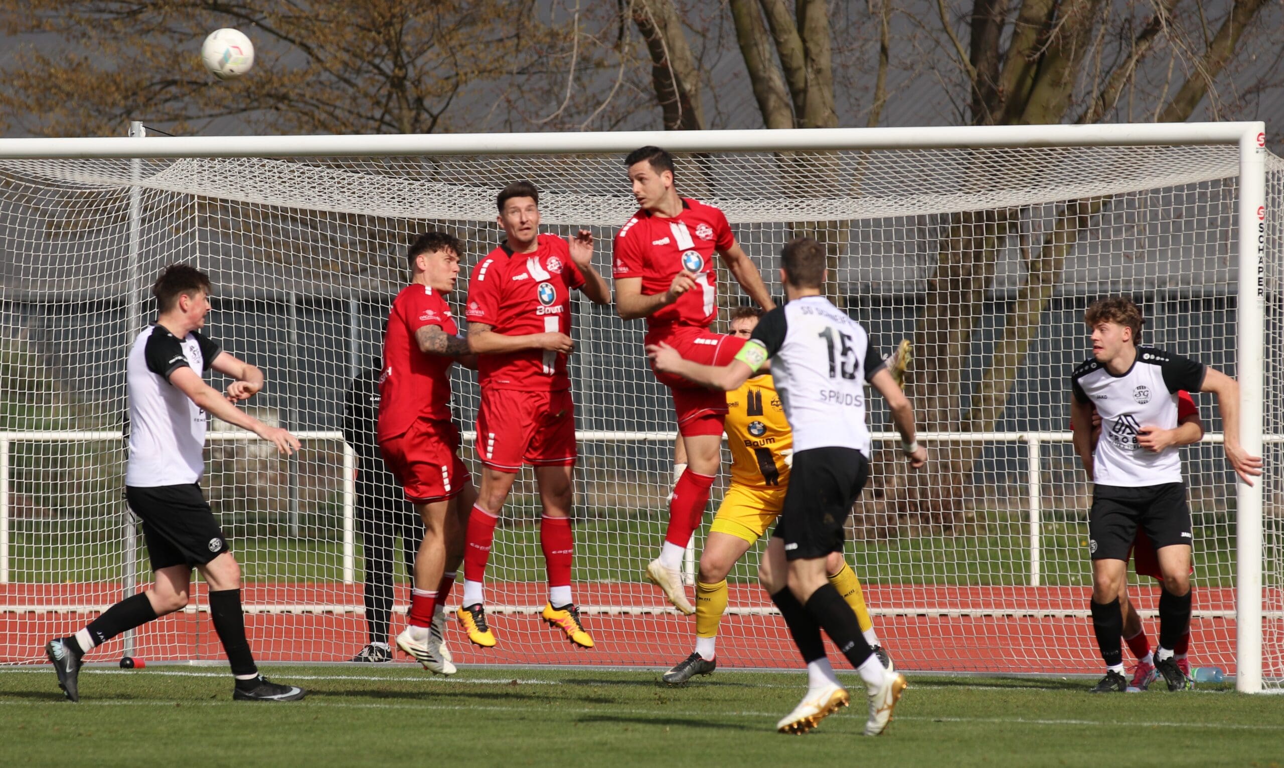 Hellwach STOP Leidenschaftlich STOP Selbstbewusst STOP und Effizient STOP: Auch nach Wiederanpfiff präsentierte sich der ABC sofort wieder auf Betriebstemperatur. Idel konnte über links nur per Foul gestoppt werden, Pazurek nutzte den fälligen Freistoß von der Strafraumseite zum 3:0 (47′). „Das Ding war durch!“ – so der Eindruck des Gros der knapp 700 Zuschauer. Doch die Gäste von Coach Stephan Simon deuteten die Situation als Startsignal, ihre Qualitäten abzurufen: Glaube an die eigene Stärke , Geschlossenheit und die wachsende Hoffnung, dass noch etwas möglich ist. Zunächst parierte der ABC-Schlussmann David Weidner stark gegen Jan Pidde, doch kurz darauf – in der 61. Minute – war er beim Kopfball von Schneifels Ausnahmestürmer machtlos. Die Flanke kam von Nicolas Görres.