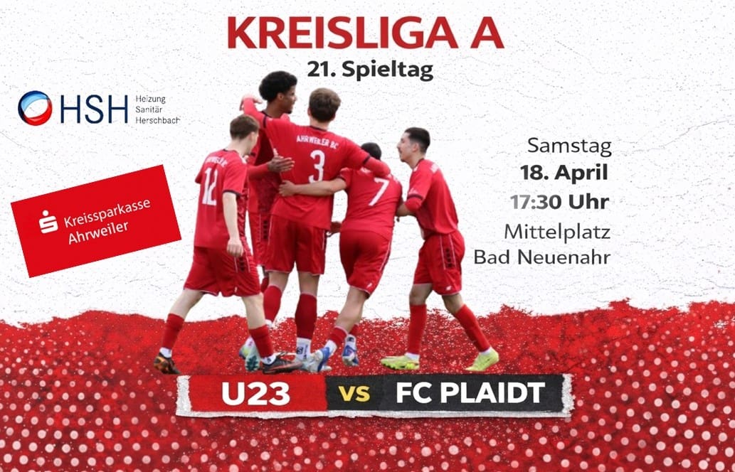Topspiel in der Kreisliga A: Die U23 des Ahrweiler BC steht vor einer richtungsweisenden Aufgabe. Am Samstagabend empfängt der Tabellenzweite den aktuellen Spitzenreiter und Meisterschaftsfavoriten FC Plaidt. Anstoß am 20. Spieltag ist um 17:30 Uhr in Bad Neuenahr (Mittelplatz).